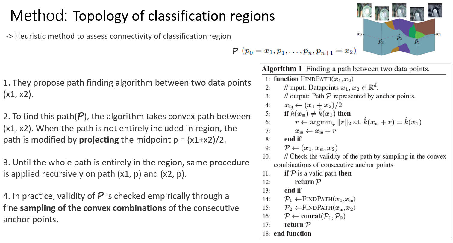 두 data point가 있을 때, 같은 class 영역에 놓여졌다고 하면, continuous한 curve가 있을까? 이 문제를 증명하기엔 꽤 까다로우므로 they propose a heuristic method to study this question. 휴리스틱한 방법을 제안한다.