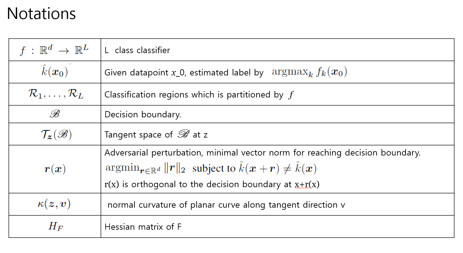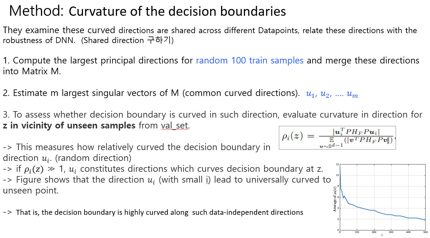 - Natural image 부근의 decision boundary는 대부분의 방향에서 평평하고 아주 극소수의 curved된 방향이 존재함을 관찰했다.
