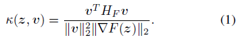 따라서 저자는 Eq(1)에 따라 z point의 prinicipal curvature를 계산한다. 이 principal curvature의 계측 평균은 Fig 5b.