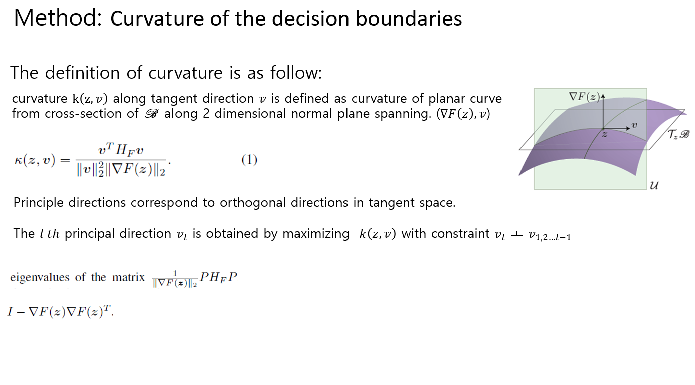 주 방향은, 이 curvature 를 최대화하는 tangent space와 직교하는 방향으로 대응된다.