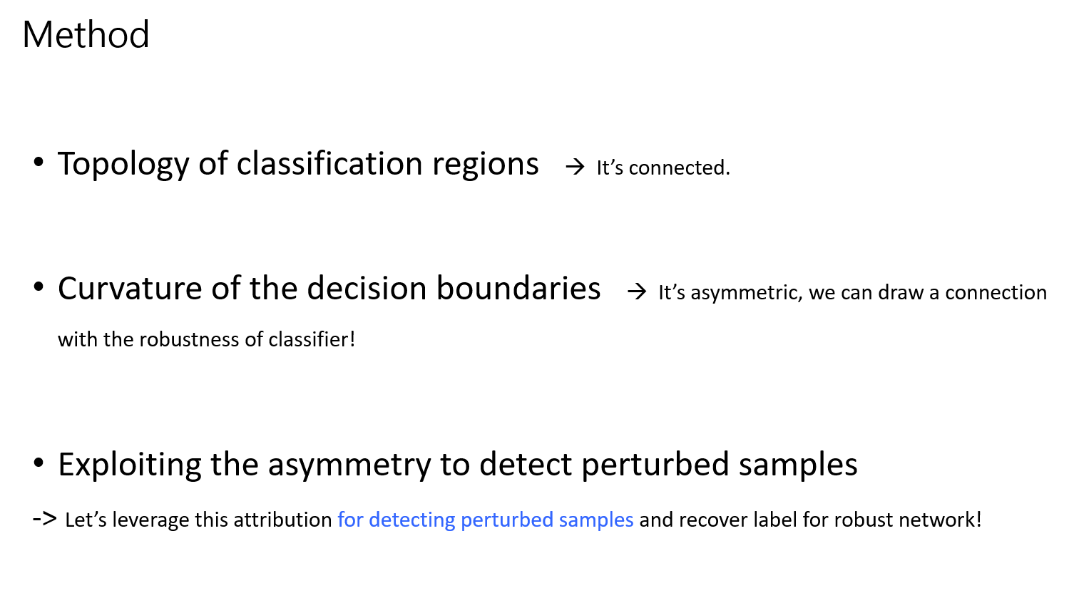 - 뉴럴넷의 decision boundary에서 근본적으로 비대칭이 존재함을 밝혔고, 그로 인해 decision boundary는 negative curvature 방향으로 biased되게 됨을 보였다.
