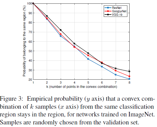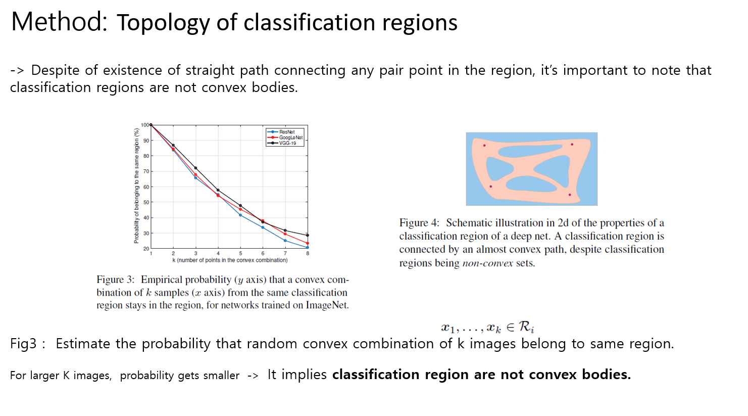 동일 class region에 속하는 k개의 이미지 조합이 많아질수록 같은 영역에 들어올 확률이 줄어감을 확인하였고 이것은 classification region이 Rd에서 convex body는 아니라는 것을 의미한다.